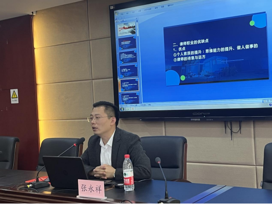 4月14日下午,Beat365中文官方网站邀请2015届国际法专业毕业研究生、北京市盈科(邯郸)律师事务所张永祥律师于Beat365中文官方网站三楼报告厅开展了题为“律师的自我进化—如何扎实稳重的成为一名好律师”的职业生涯规划专题讲座。活动由学院学生工作办公室主任陈运涛主持,2021级、2022级研究生70余人参加。